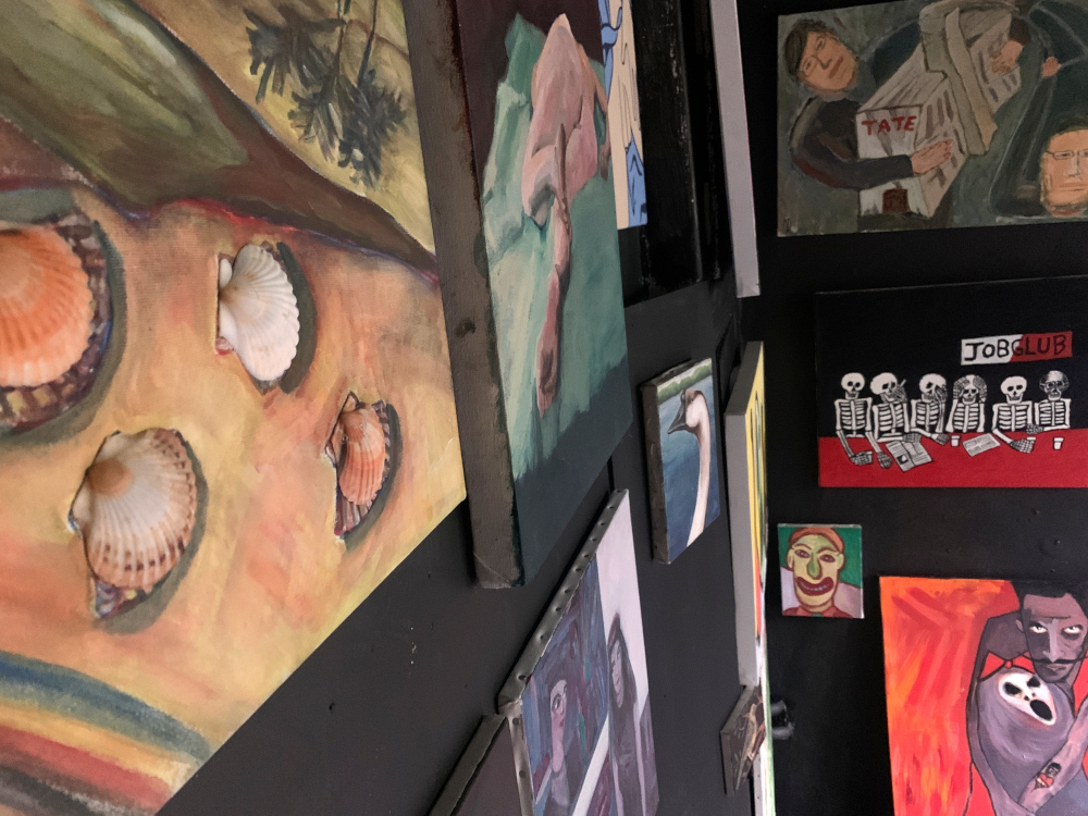 Several Stuckism books are available to read. Stuckism : An exhibition at Black Ivory Printmaking & Audio Club. Photo: Edgeworth Johnstone, 21 June 2022.Emma Pugmire’s sea shells. Stuckism : An exhibition at Black Ivory Printmaking & Audio Club. Photo: Edgeworth Johnstone, 18 June 2022.Stuckism : An exhibition at Black Ivory Printmaking & Audio Club. Photo: Edgeworth Johnstone, 21 June 2022.Emma Pugmire. Stuckism : An exhibition at Black Ivory Printmaking & Audio Club. Photo: Edgeworth Johnstone, 18 June 2022.