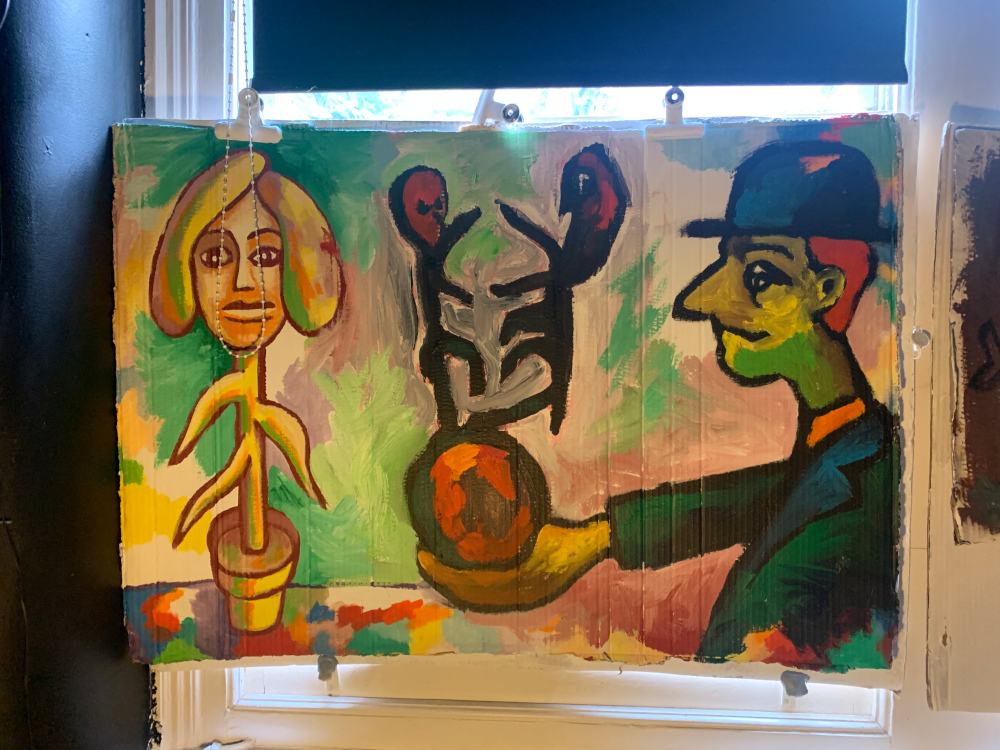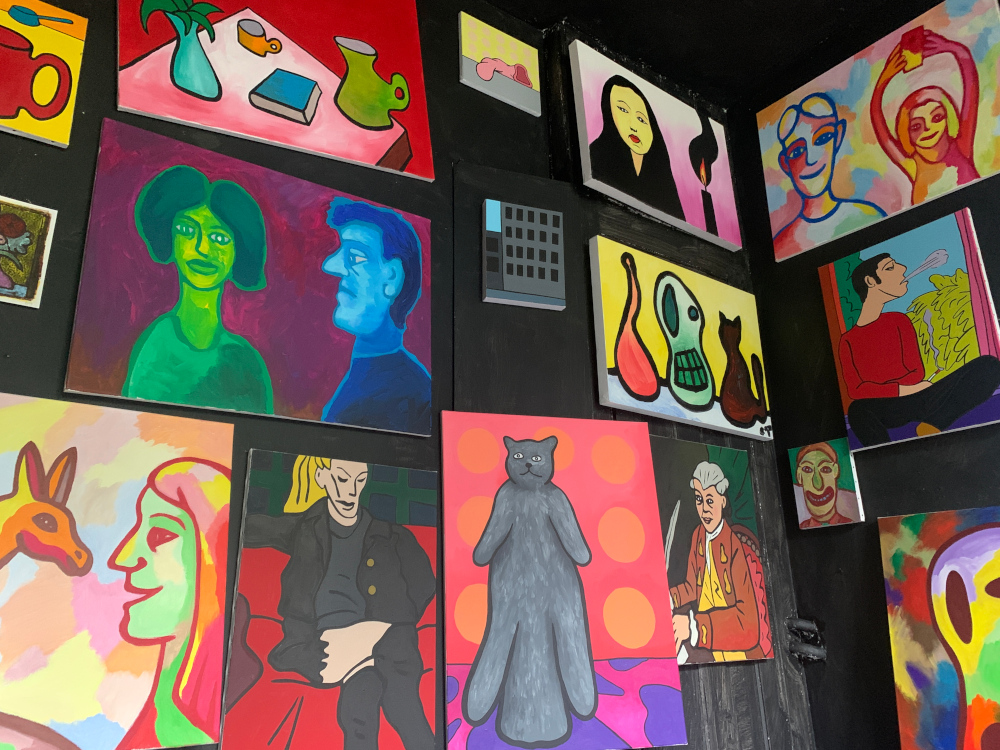 Exhibition curator, Edgeworth Johnstone: ‘Mr. Stuckism is the first in a series of Stuckist solo shows at Black Ivory Printmaking & Audio Club in Muswell Hill, London. This series follows immediately on from our Stuckist group show, titled Stuckism. Mr. Stuckism was conceived and hung on 20th and 21st July 2022. Mr. Stuckism includes two collaboration paintings by Thomson and Johnstone.